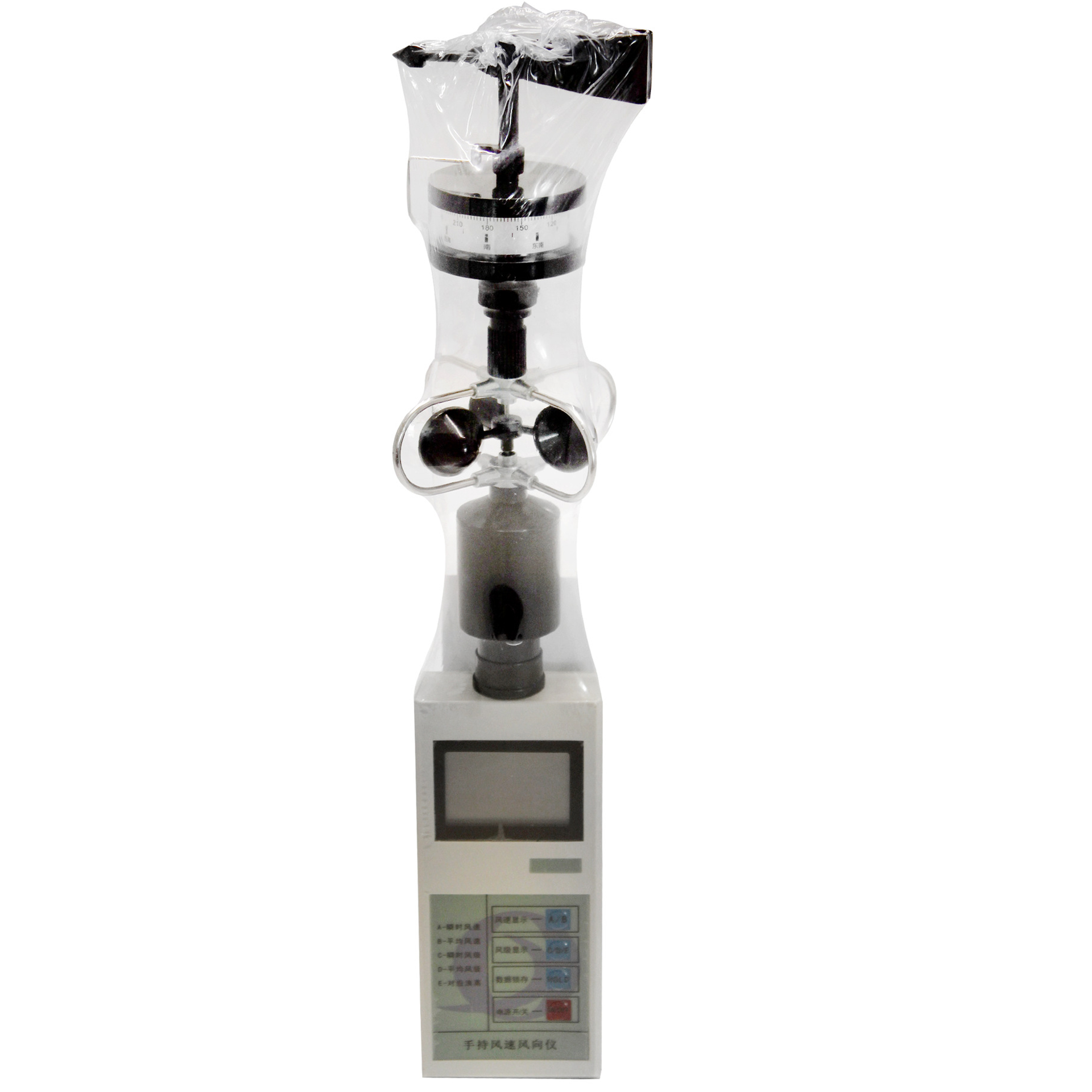 6、屏幕液晶显示温度、湿度、风速、气压值,风向可实现自动定北;
